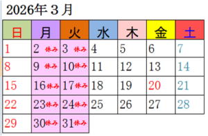 定休日が毎週月曜・火曜